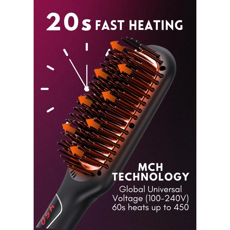 MEGAWISE Black Hair Straightener Brush 2023 MCH Technology 450F Fast Smooth Frizz Free