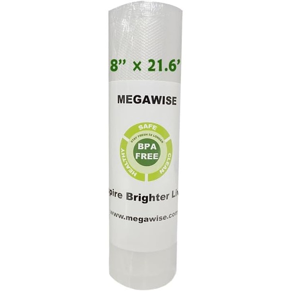 MEGAWISE Vacuum Sealer Bags/Roll, 8" x 21.6' Long, BPA-Free, Compatible with MEGAWISE & All Vacuum Sealing Machines, Heavy-Duty Dual-Sided Textured for Stronger Seal