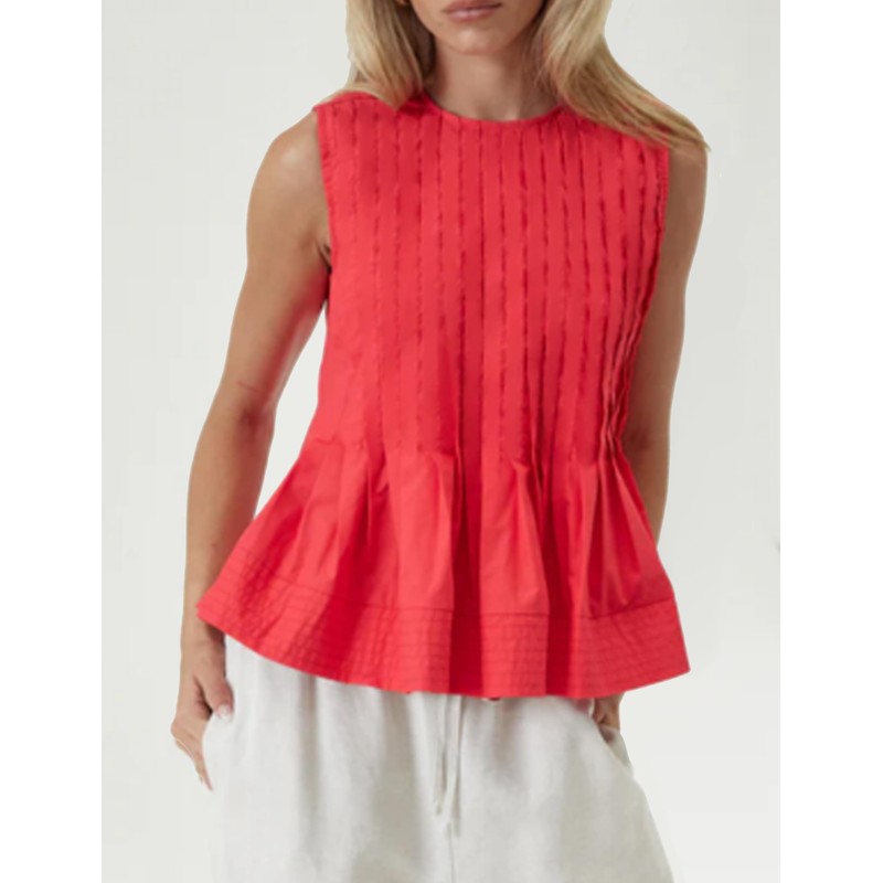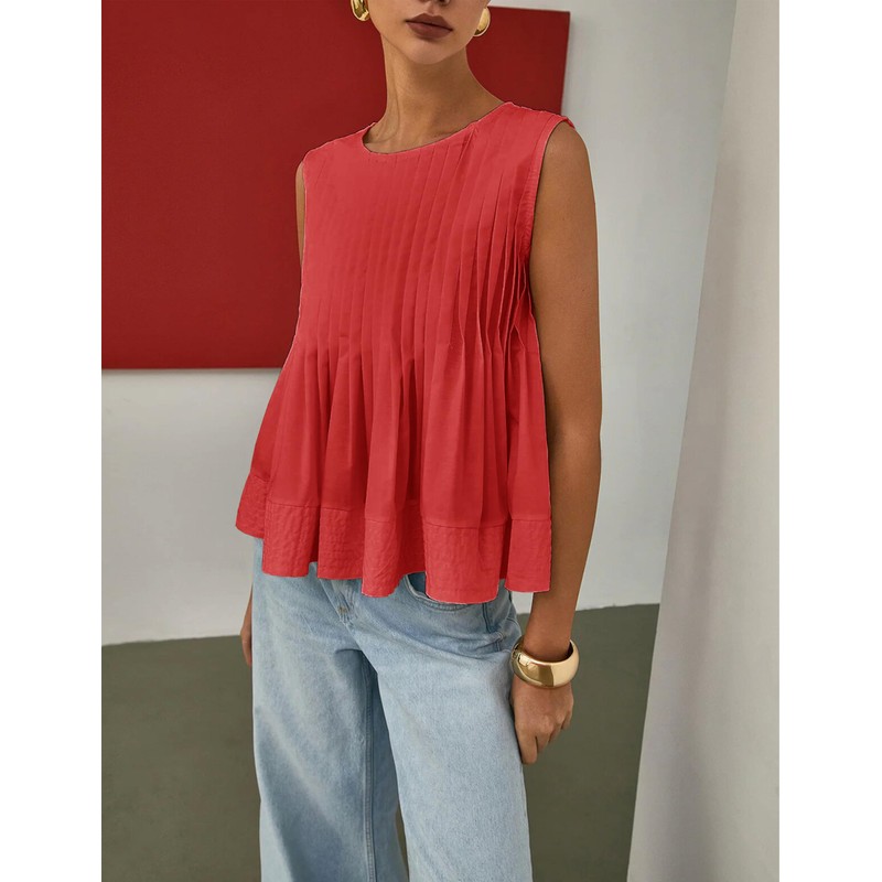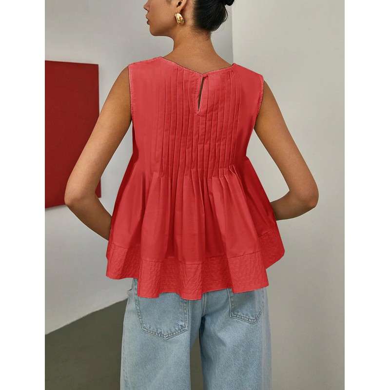Megfie Womens Summer Pleated Peplum Sleeveless Blouse Tank Tops Round Neck Y2K Babydoll Blouse Shirt(0869-Red-S)
