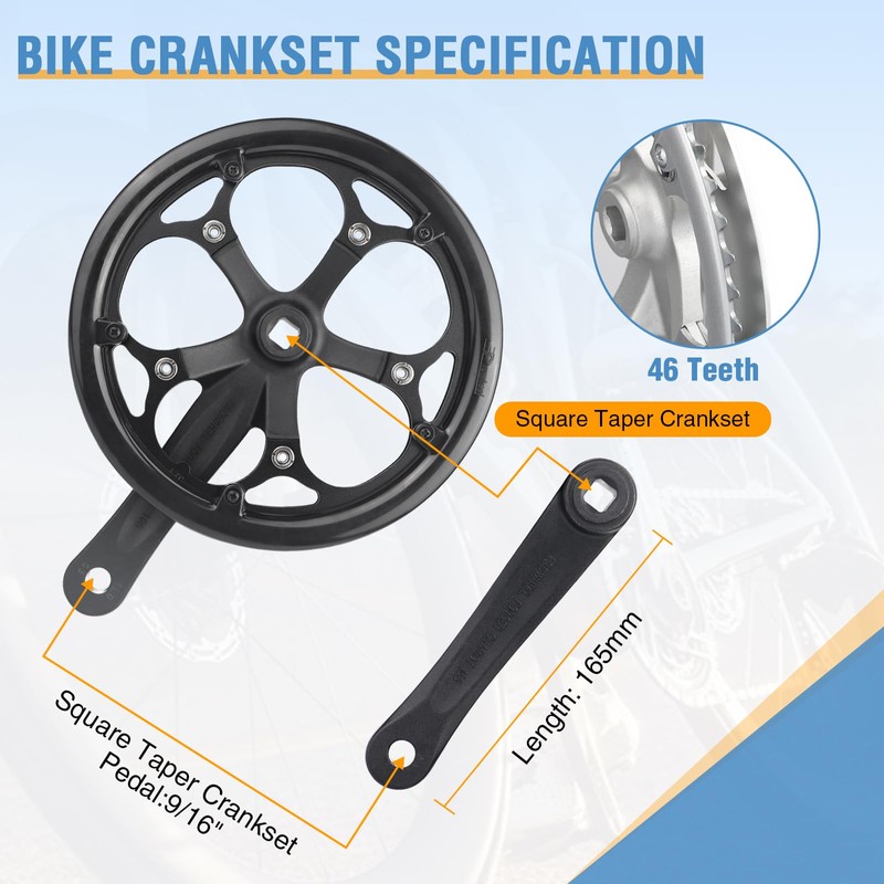 • Model: MG-BCK; MEGHNA Bike Crankset 52 Teeth 165mm Crank Arm with Bolts for Folding Bike E-Bike.