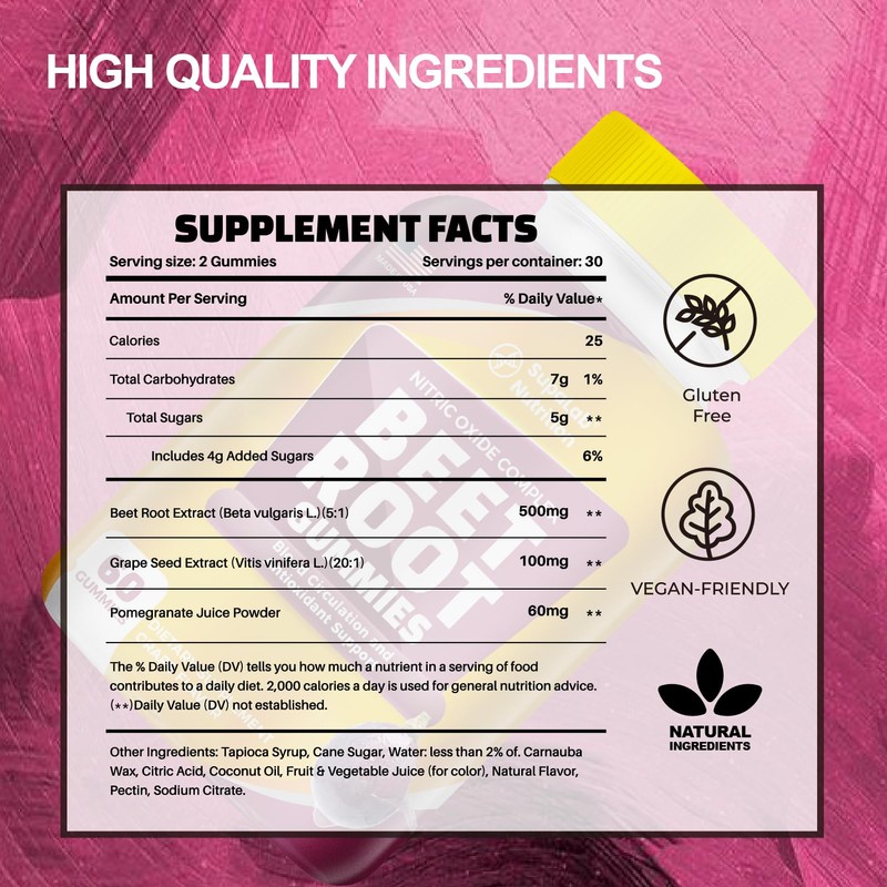 MEGNETA Beetroot Gummies with Grape Seed Extract & Antioxidants – 60 Chewable Gummies for Healthy Circulation & Detox