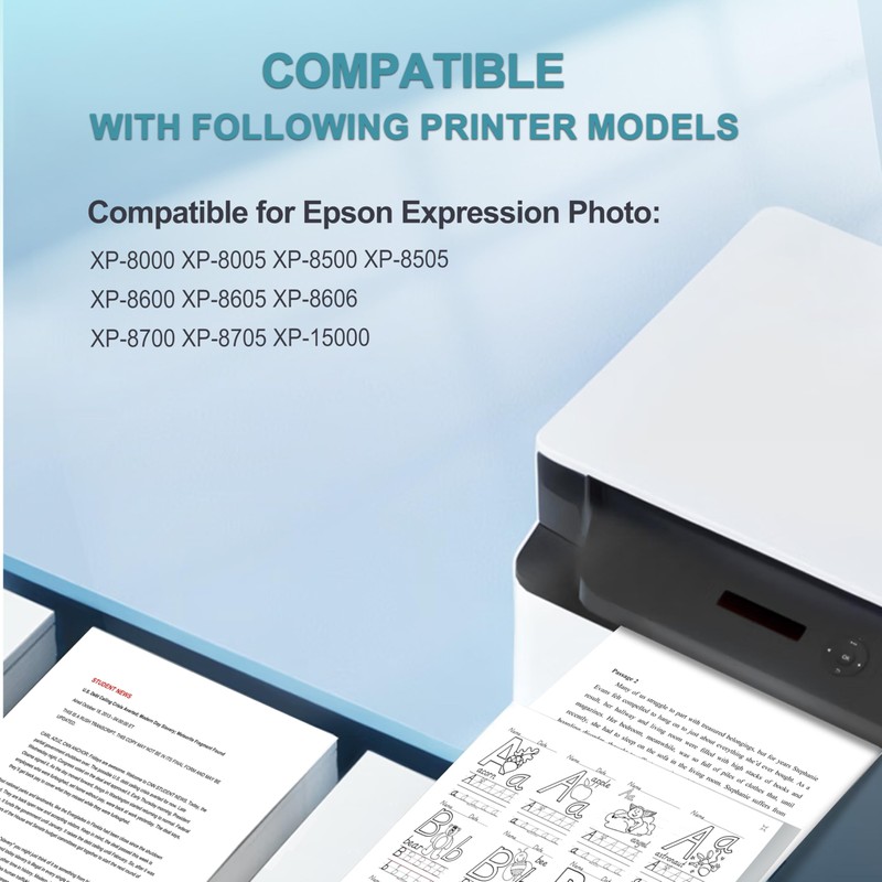 • Compatible Printers:Compatible for Epson Expression Photo XP-8000 XP-8005 XP-8500 XP-8505 XP-8600 XP-8605 XP-8606 XP-8700 XP-8705 XP-15000 Printers