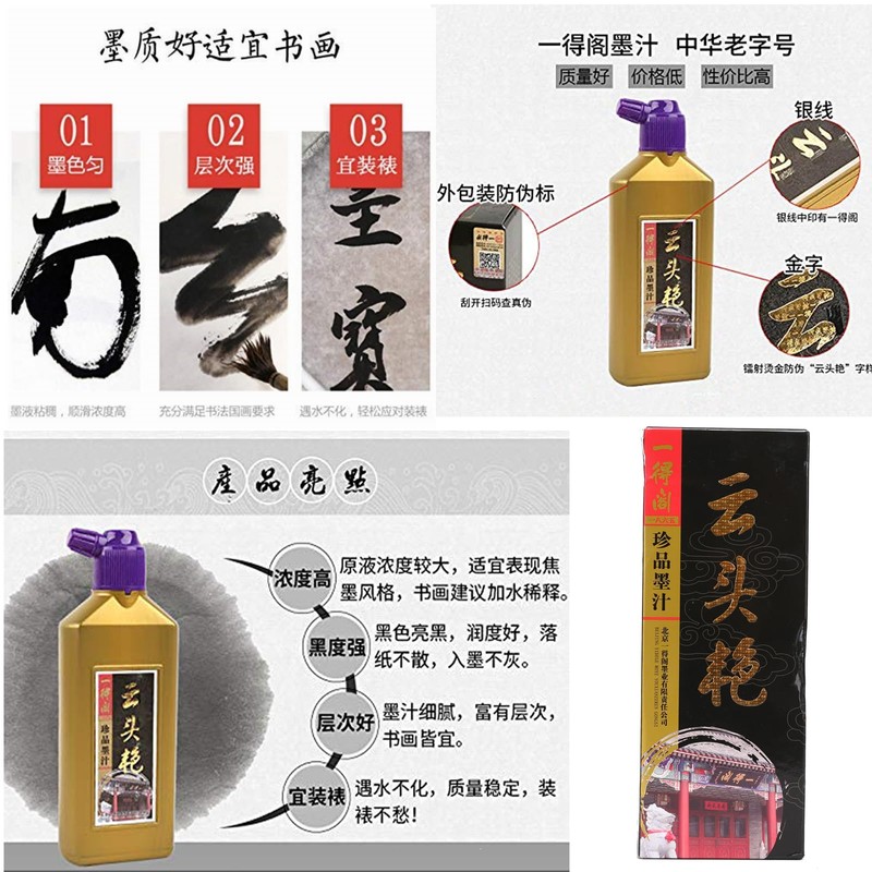MEGREZ High-Grade Chinese Calligraphy Brush Ink, Yidege Yun TOU Yan Black Liquid Ink Sumi Ink for Calligrapher Writing and Drawing Chinese Japanese Calligraphy, 250ml(8.8 OZ)/Bottle