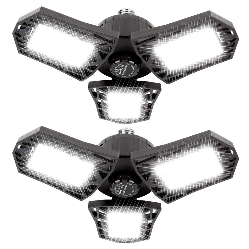 Megrezo LED Garage Lights - 6000 Lumen 6500K Daylight 60W, Three Leaf Led Garage Ceiling Lights, Pack of 2