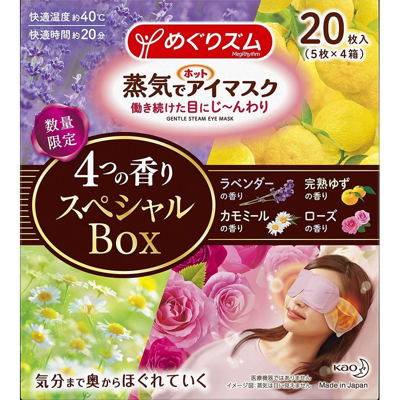 Megrhythm Hot Eye Mask with Steam Assortment (Lavender, Chamomile, Yuzu, Rose, 5 Each), Total of 20 Sheets x 2 Boxes