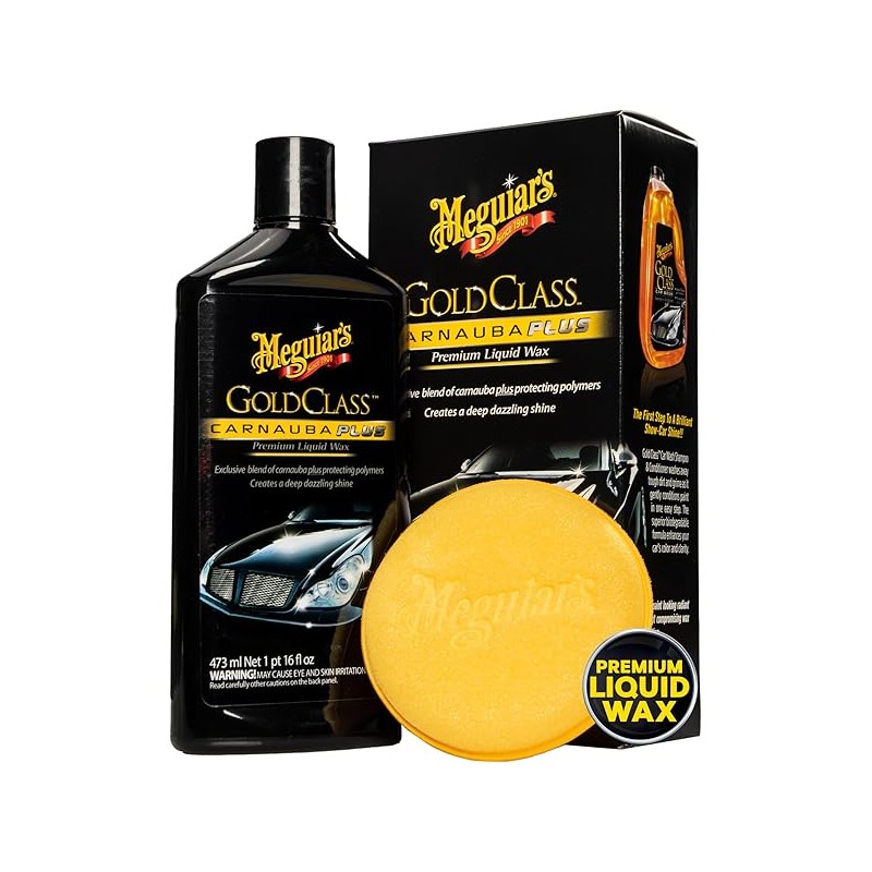 Meguiar's Gold Class Carnauba Plus Premium Liquid Wax Kit, Car Detailing Kit with a Pure Carnauba Wax Blend and a Foam Applicator Pad for Keeping Glossy Paint Protected Like a Pro, 16 Oz Bottle