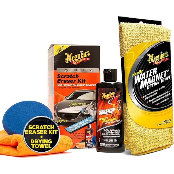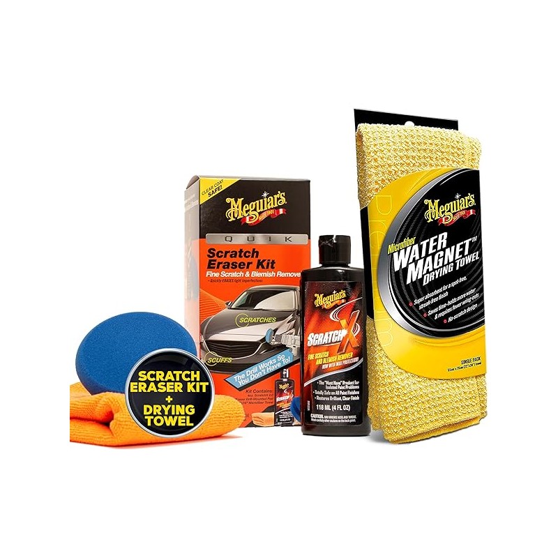 Meguiar's Quik Scratch Eraser Kit + Water Magnet Microfiber Drying Towel Car Care Bundle (3 Items)