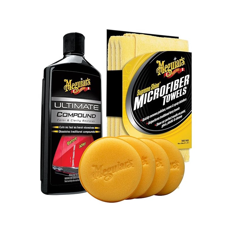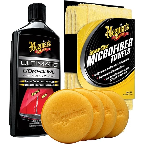 Meguiar's Ultimate Compound, 16 oz Bundle, Includes Supreme Shine 4" Foam Applicator Pads 4 Pack and Supreme Shine Microfiber Towels 3 Pack