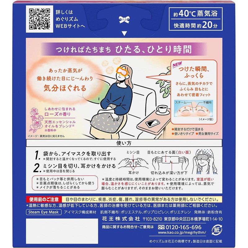 Fluffies with steam and fits snugly to your eyes. Take advantage of your daily moments. Approx. 104°F (40°C) steam bathing; Comfortable time: Approx. 20 minutes