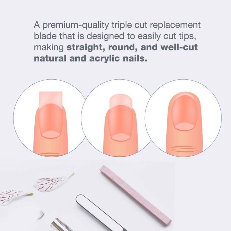 • PERFECT FOR HOME AND SALON USE: Top choice and go-to product by nail professionals for its precision and durability to achieve the best nail care. This replacement blade cuts tips and acrylic nails easily and precisely.
