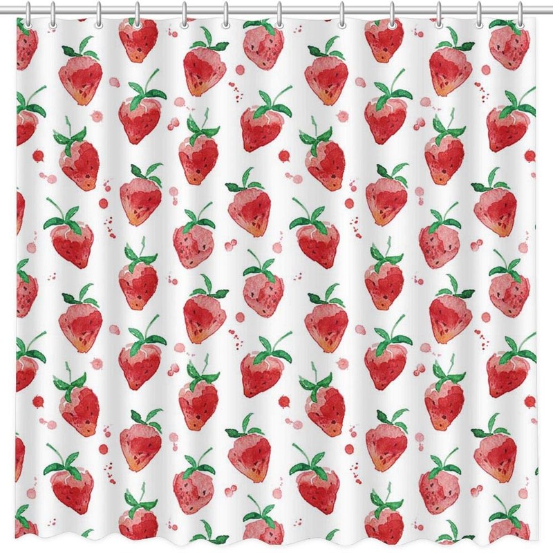 MEHOFOND 72x72inch Strawberry Shower Curtain Cute Bath Curtains for Bathroom Waterproof Durable Fabric Home Decoration Polyester Material with 12 Hooks
