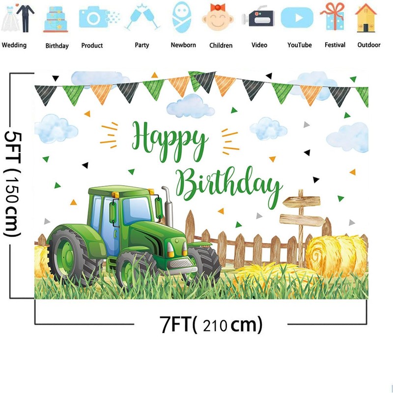- Features: Green tractor birthday photography background, high resolution digital printing technology; eye-catching details; realistic colors, help you brighten up your birthday party