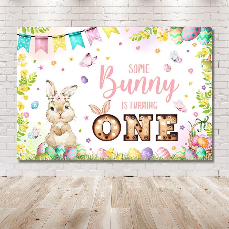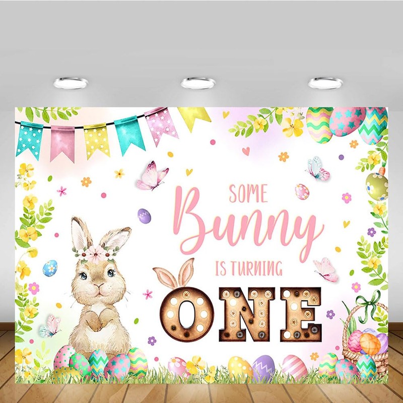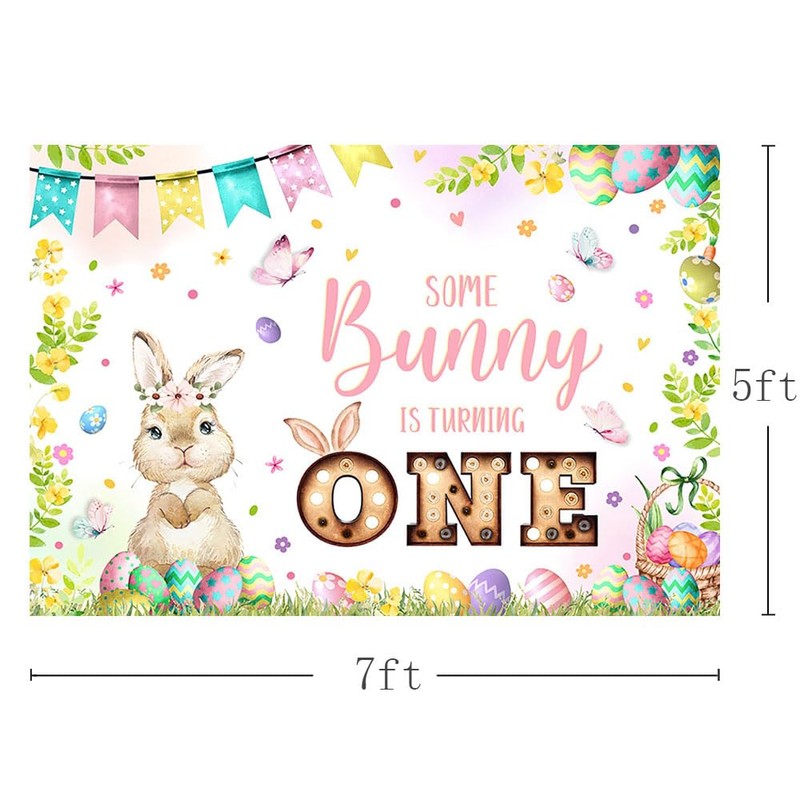 MEHOFOND 7x5ft Spring Bunny Theme Backdrop for Gril First Birthday Rabbit Some Bunny is Turning One Easter 1st Birthday Background with Eggs Butterfly Party Decorations
