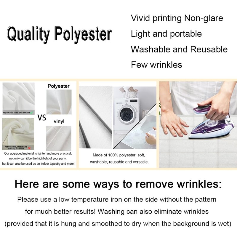 - ❤Material: Economical polyester fiber, soft, durable and reusable. There is a crimping to prevent background tearing. Washable and ironing (but do not use bleach water for washing and ironing)