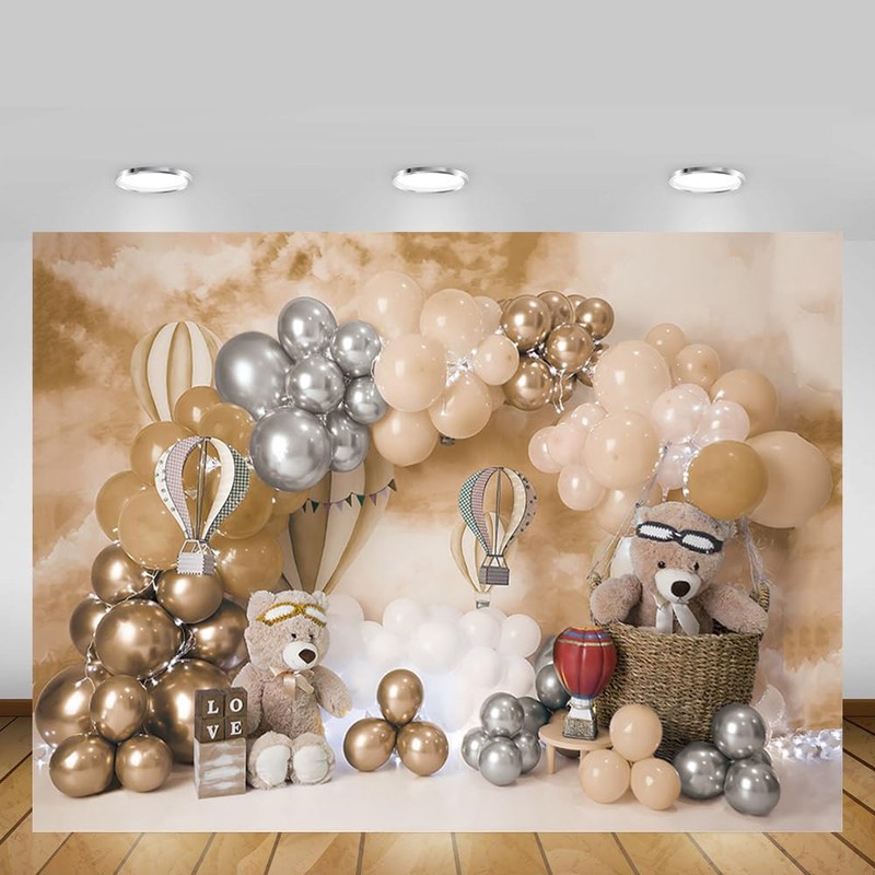 MEHOFOND Brown Bear Baby Adventure Boys Birthday Party Decoration Banner Photo Booth Props Studio 7x5ft