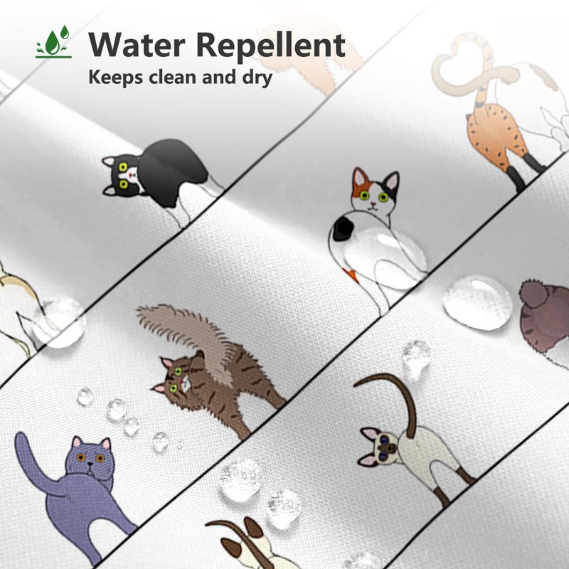 - Multi options: Our funny cat shower curtain is not just for the bathroom, it's perfect for use as a hotel; door; bathroom window; room partition; dorm room; wardrobe; or car curtain for travel