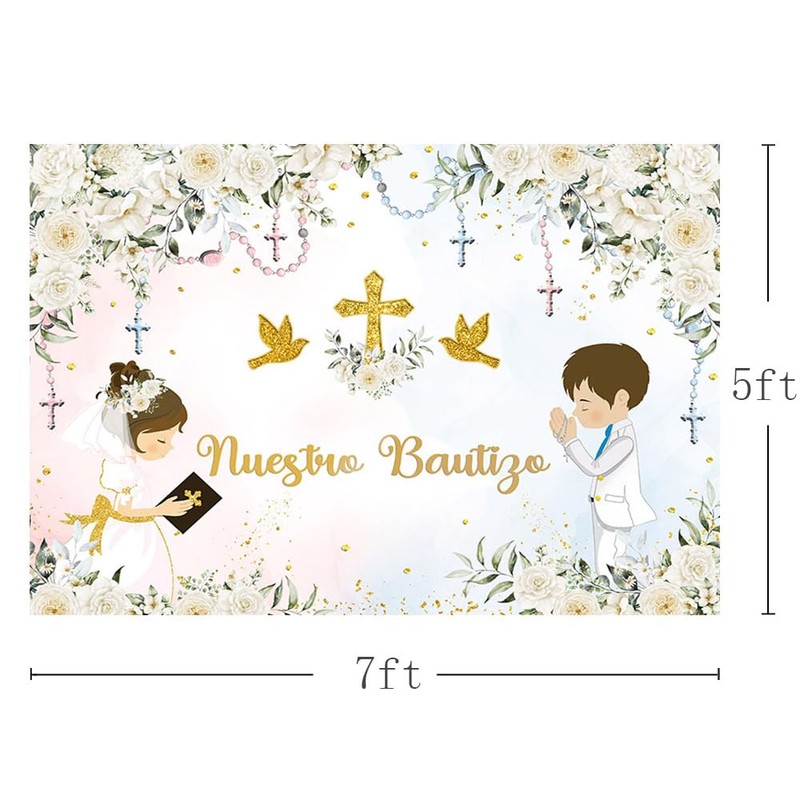 - Material: Nuestro bautizo backdrop is made of economical polyester fiber, soft, durable and reusable. There is a crimping to prevent background tearing. Washable and ironing (but do not use bleach water for washing and ironing)