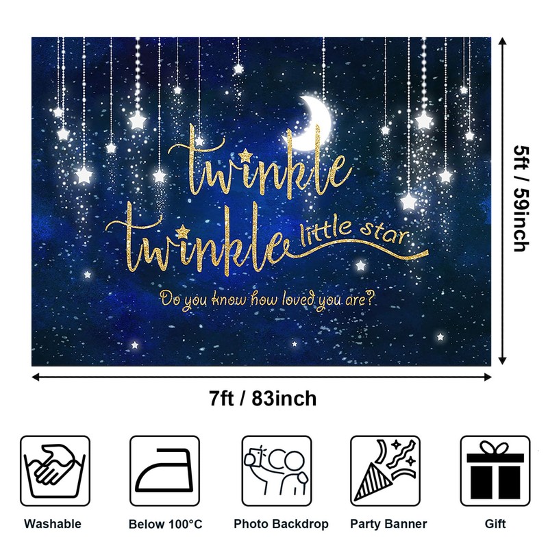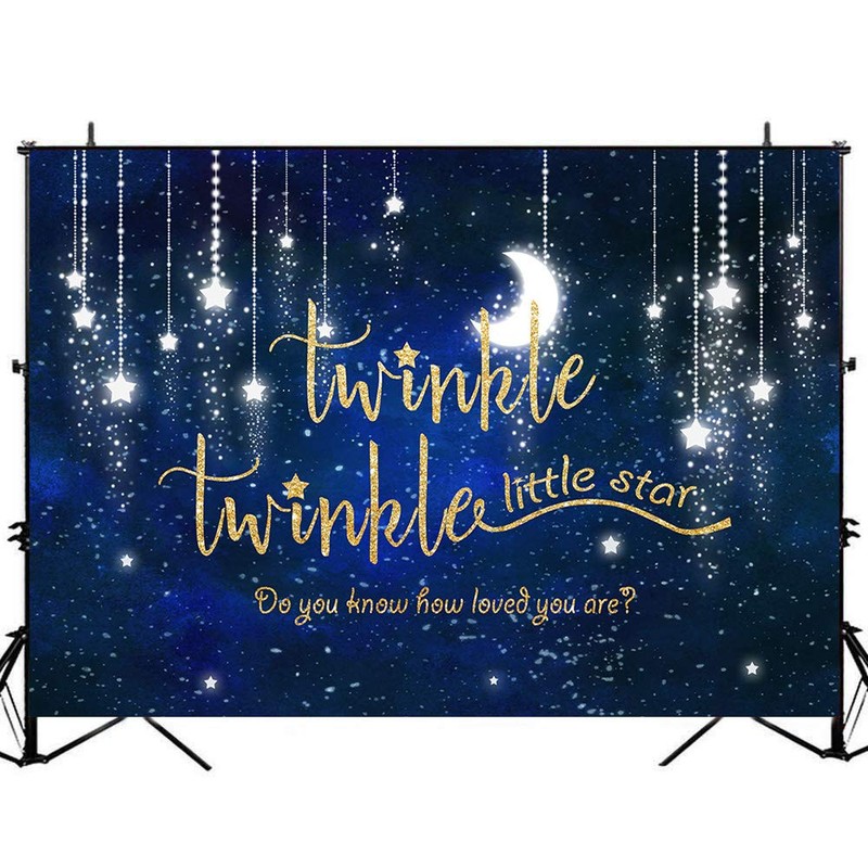 Mehofoto Twinkle Twinkle Little Star Backdrop Shinning Star and Moon Galaxy Space Photography Background 7x5ft Glitter Little Star Birthday Baby Shower Backdrop Party Studio Props