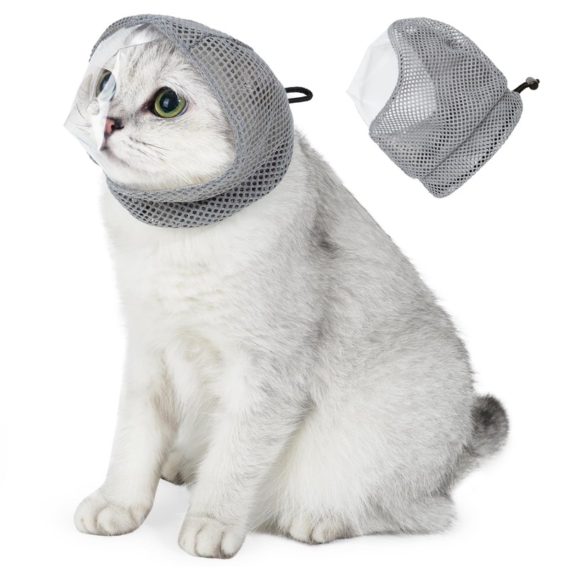 MeiAOBest Cat Muzzle,Breathable Mesh Pet Muzzles with Transparent Mask, Cat Mouth Guard Grooming Muzzle for Prevent Biting Chewing_S