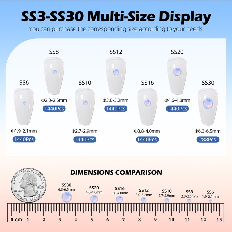 - Material: Glass/Artificial Crystal, Flat Back Round, High-precision cross-section, multi-sided cutting, high brightness, high Sparkly