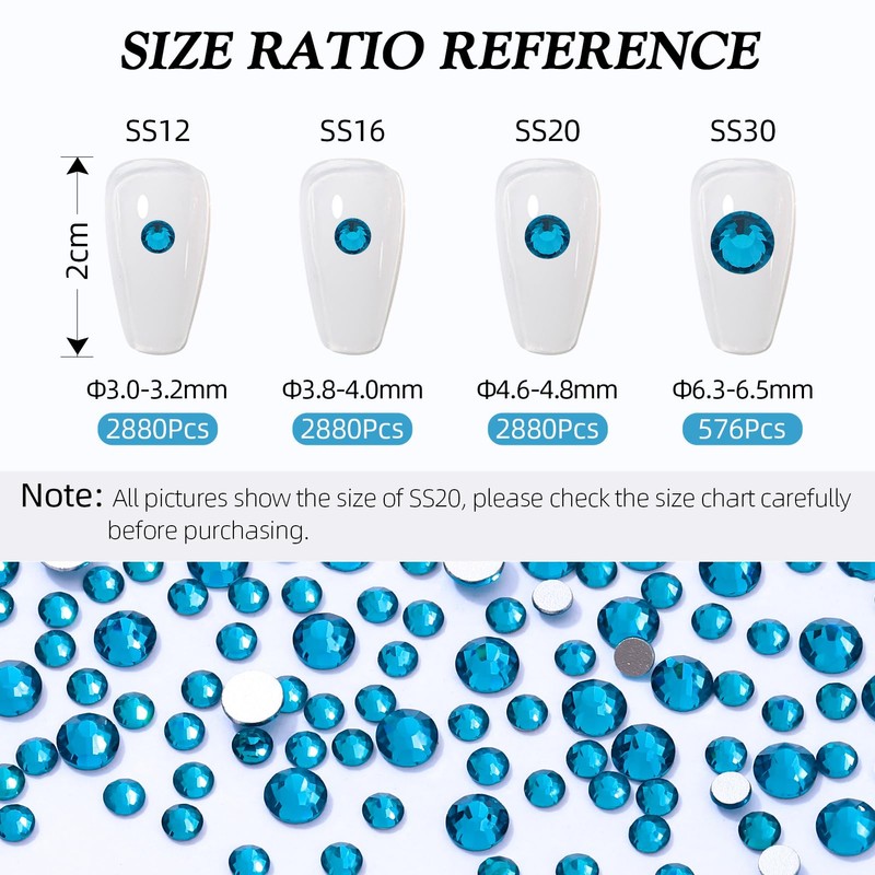 Meibite Malachite Blue Flatback Rhinestones, Glass Rhinestones for Nail Art and Craft, Glue Fix, Loose Crystal Gemstones(Malachite Blue, SS12, 2880pcs, 2.9-3.0mm)