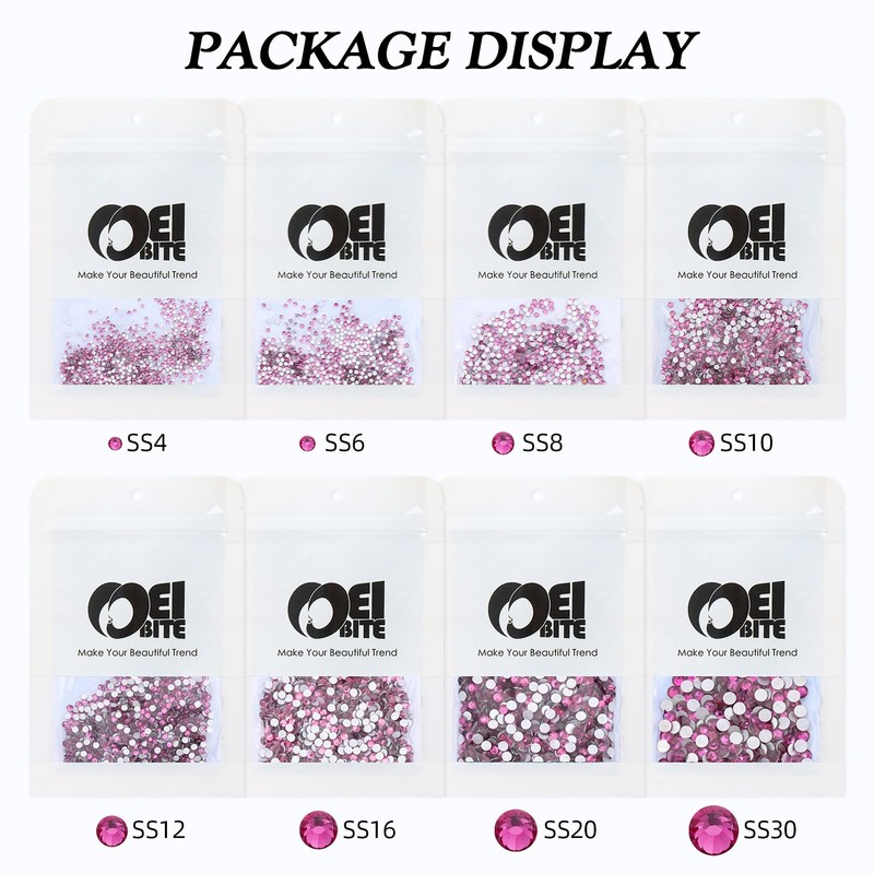 - Product Packaging: Bags packaging SS12 2.9~3.0 MM - 1440 Pcs fuchsia flatback rhinestones