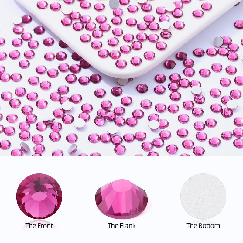 MEIBITE Meibite Fuchsia Flatback Rhinestones, Glass Rhinestones for Nail Art and Craft, Glue Fix, Loose Crystal Gemstones(Fuchsia, SS12, 1440pcs, 2.9-3.0mm)
