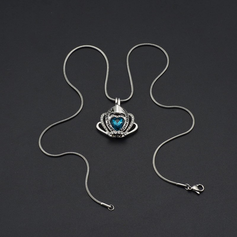 MeiceM Crystals Cremation Jewelry for Ashes A piece of my heart Live in heaven Crown Heart Memorial Urn Necklace Keepsake Pendant for Women Girl (Blue)