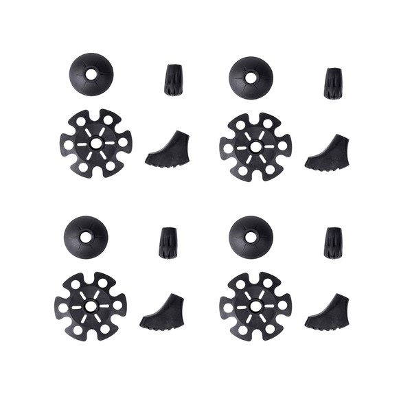 - Complete 4-in-1 Set: Includes snow baskets, mud baskets and rubber tip protectors for all-terrain use (16 pieces total)
