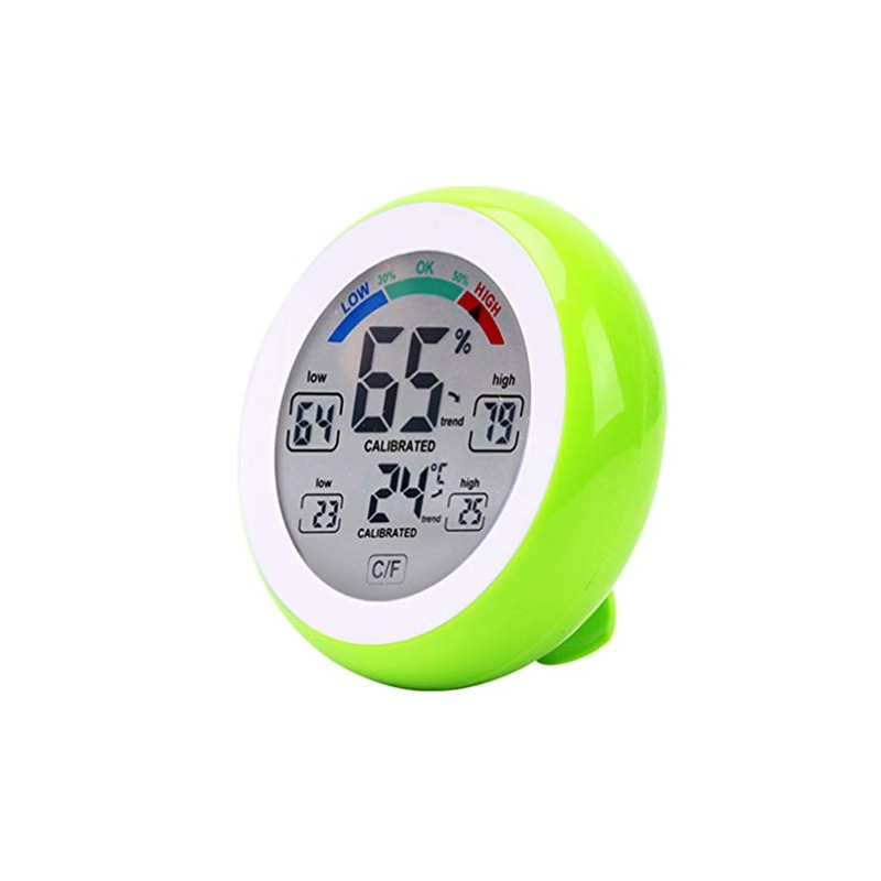 Meichoon Thermometer Hygrometer, Wireless Electronic, for Indoor and Outdoor Use, Round Touchscreen Digital LCD Display, Thermometer, Weather Station Tester, UD02 Green