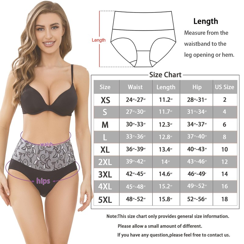 - 【STRETCHY COVERED WAISTBAND】 Soft stretchy DOUBLE-LAYER fabric covered waistband sits right at the waist. High-waisted Underwear provide moderate abdominal support,no rolling or bunching at the waist,no compression,giving your waist a comfortable,controlled and toned look.