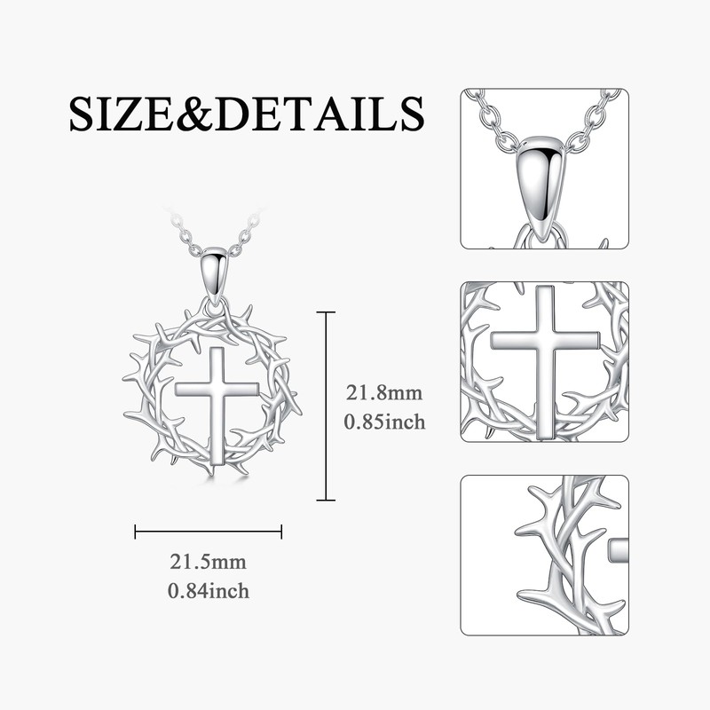 - Material: Crown of Thorns Cross Necklace made of real 925 sterling silver. Hypoallergenic, lead-free, nickel-free, cadmium-free. Comfortable and suitable for women or men for long-term wear.