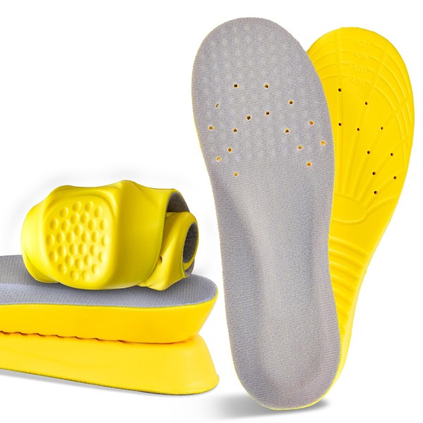 Meidlan インソール 衝撃吸収 アーチサポート, 超軽量 スポーツ用, 2足4枚セット, 立ち仕事用 (イエロー, L(27-30cm向き))