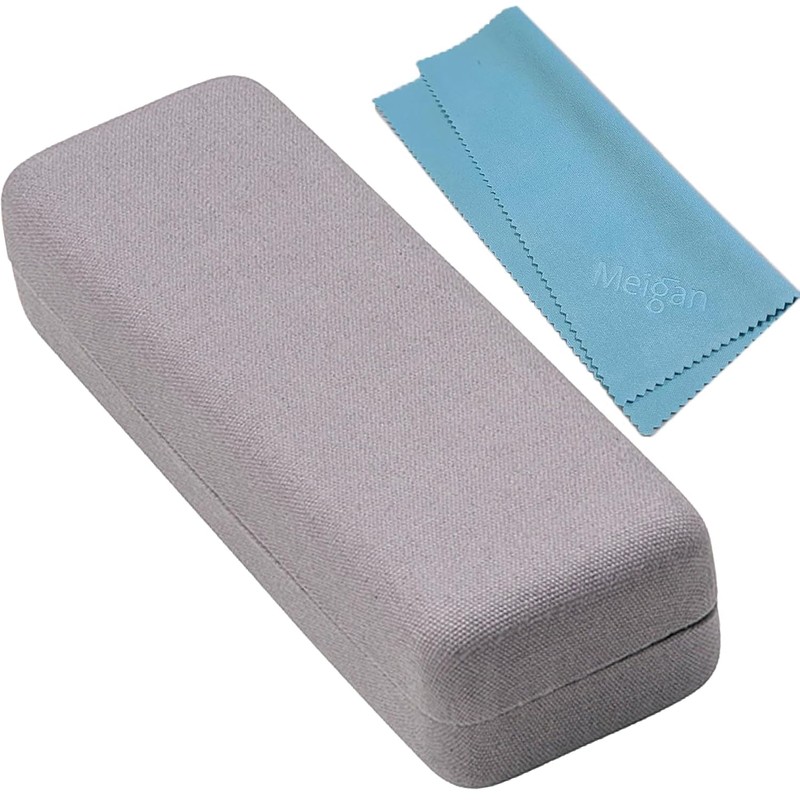 meigan Compact Square Glasses Case, Good Aluminum, Hard, Spring Type, Gray (With Cloth)