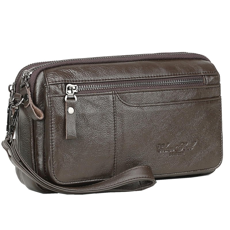 Meigardass Men's Clutch Bag, Genuine Leather, Popular, Simple, Lightweight, Large Capacity, brown-3