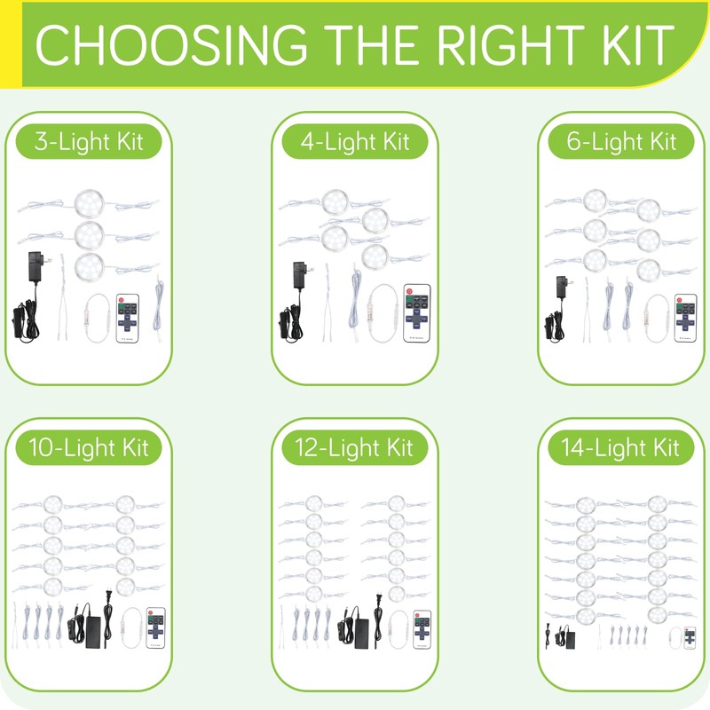 - Easy to Install - A plug-and-play light kit, everything required to complete the installation is included, screws and double-adhesive stickers are optional for mounting the light pucks