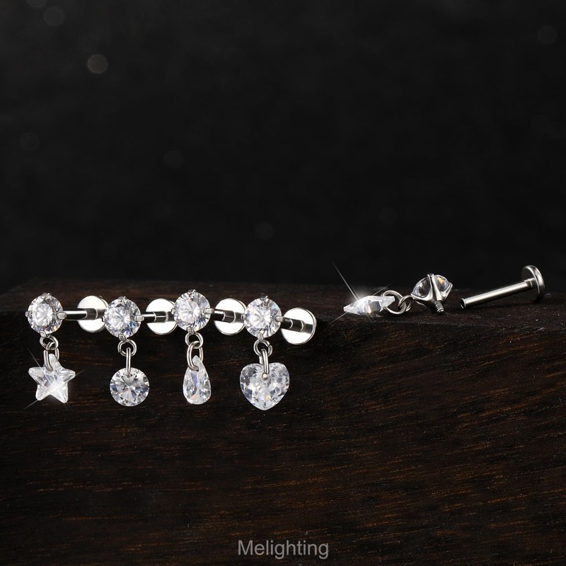 - Design of Cartilage Earring: This cartilage earring features an internally threaded bar with a dangling star clear CZ for added sparkle. Made from durable 316L stainless steel, it combines lasting style with a touch of elegance