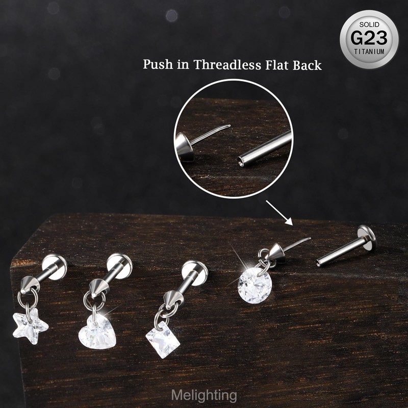• Threadless Earring Style: Each order includes a 16G (1.2 mm) 8 mm dangle round threadless earring crafted from durable titanium G23 and adorned with eye-catching clear CZ
