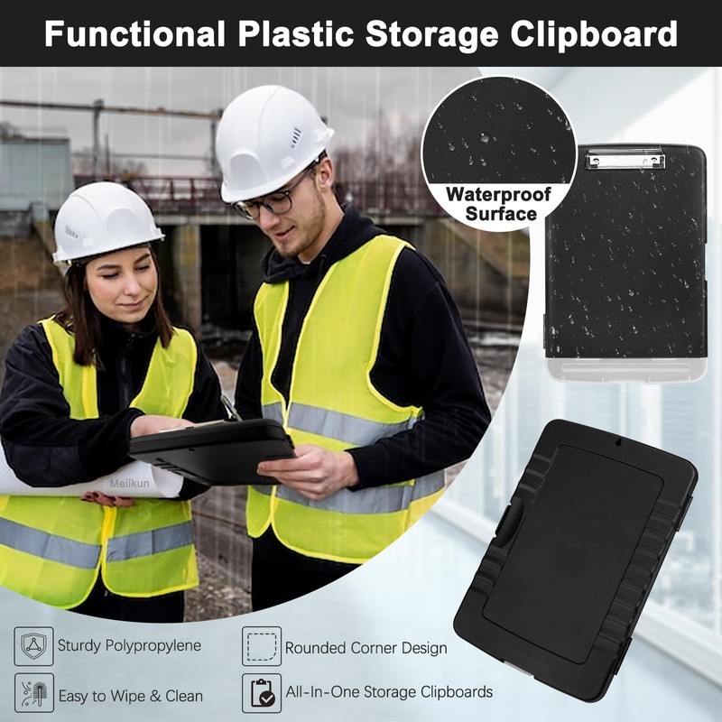 Meiikun Clipboard with Storage, High Capacity Clip Boards 8.5x11 with Pen Holder, A4 Plastic Clipboards Legal Size, Nursing Clipboard Folder Office Conference for Nurses Teachers (Black)