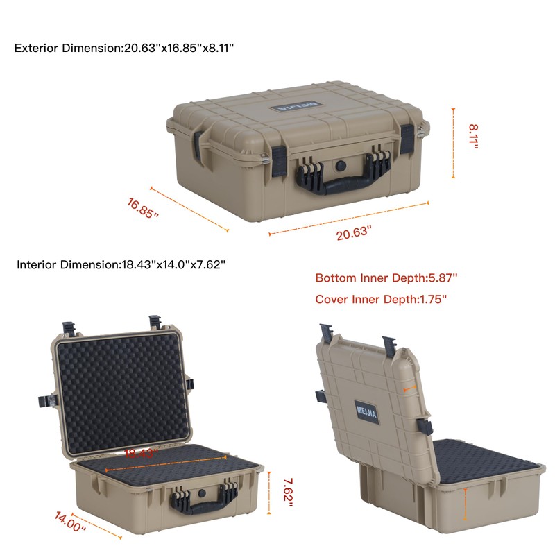 MEIJIA Portable All Weather Waterproof Protective Hard Case,Compact Camera Case with Customizable Fit Foam,Fit Use of Drones,Camera,Equipments, 20.62 x16.85x8.11inches(Desert Tan)
