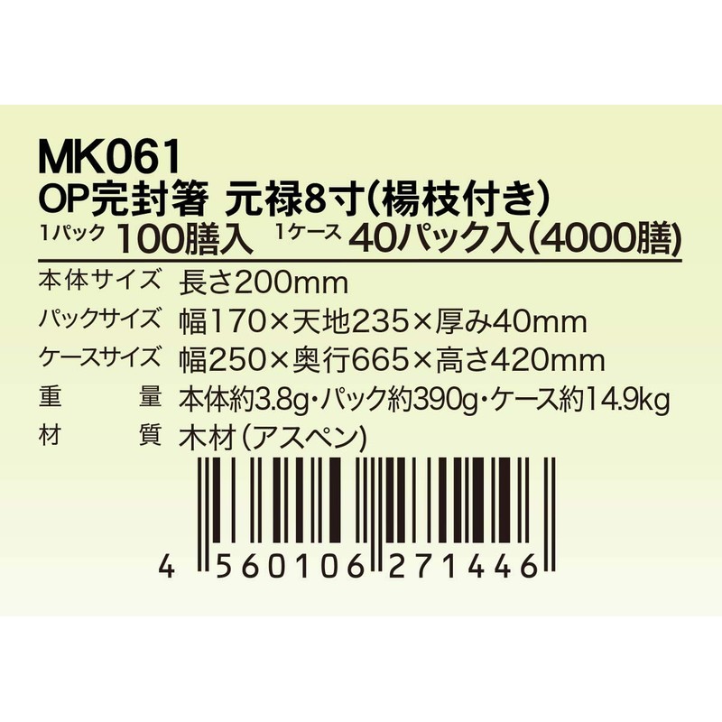 Meikai MK061 (Individual Packaging, Split 8 Inch), Genroku Chopsticks, Complete Chopsticks with Toothpicks, Commercial Use, 100 Pairs for Takeout