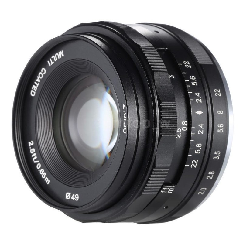 - 50 mm fixed manual focal length and maximum aperture of f/2. 0