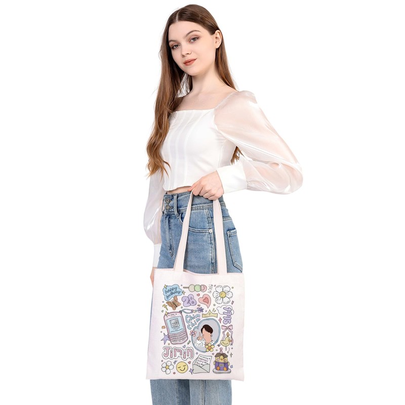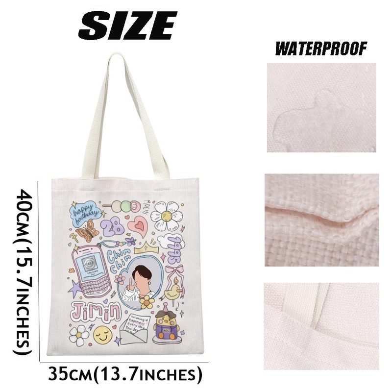 MEIKIUP JIMIN Canvas Tote Bag K-pop Group Bangtan Shoulder Bag JIMIN Fans Gift K-pop JIMIN Merchandise K-pop Tote Bag (JIMIN TB)