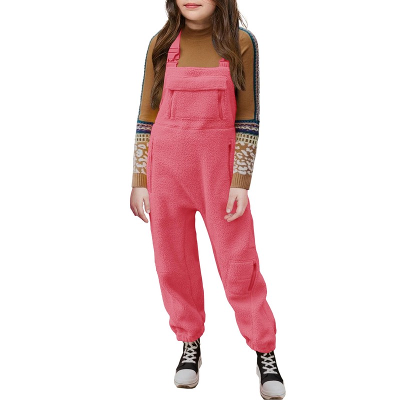 Meikulo Girls Fleece Overalls Kids Warm Winter Loose Casual Jumpsuits with Pockets 5-14 Years