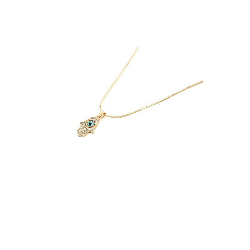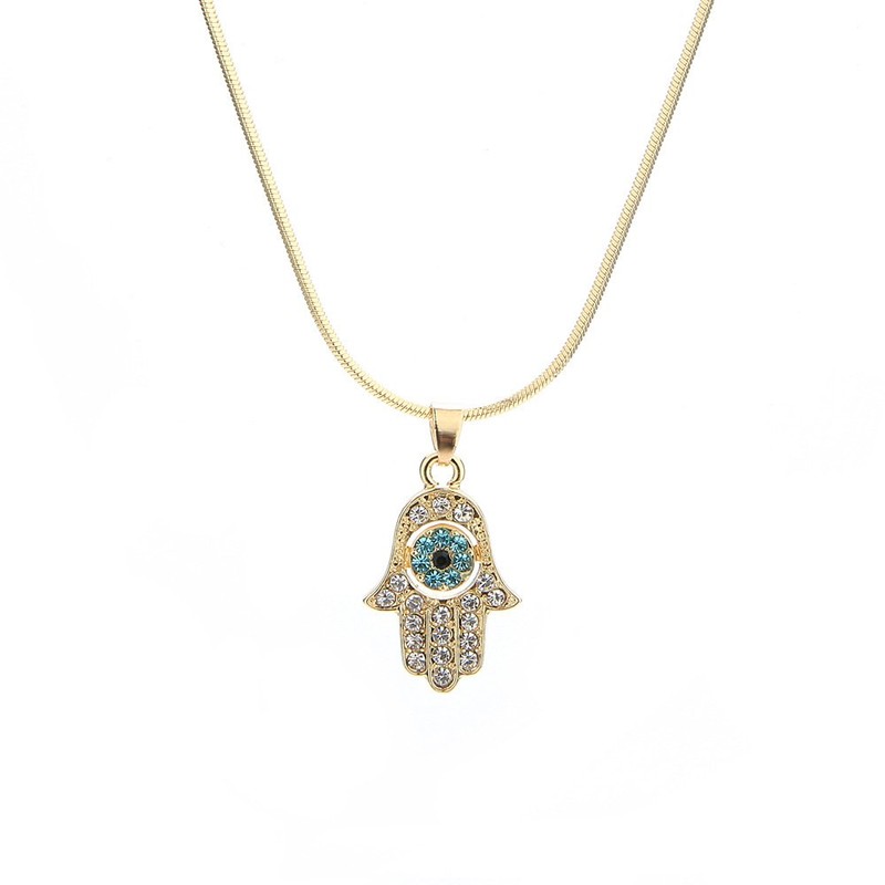 Meiligo® Fashion Womens Hip-hop Blue Evil Eye Necklace Jewelry Rhinestone Protective Hand of Fatima Palm Pendant Necklace (Gold)