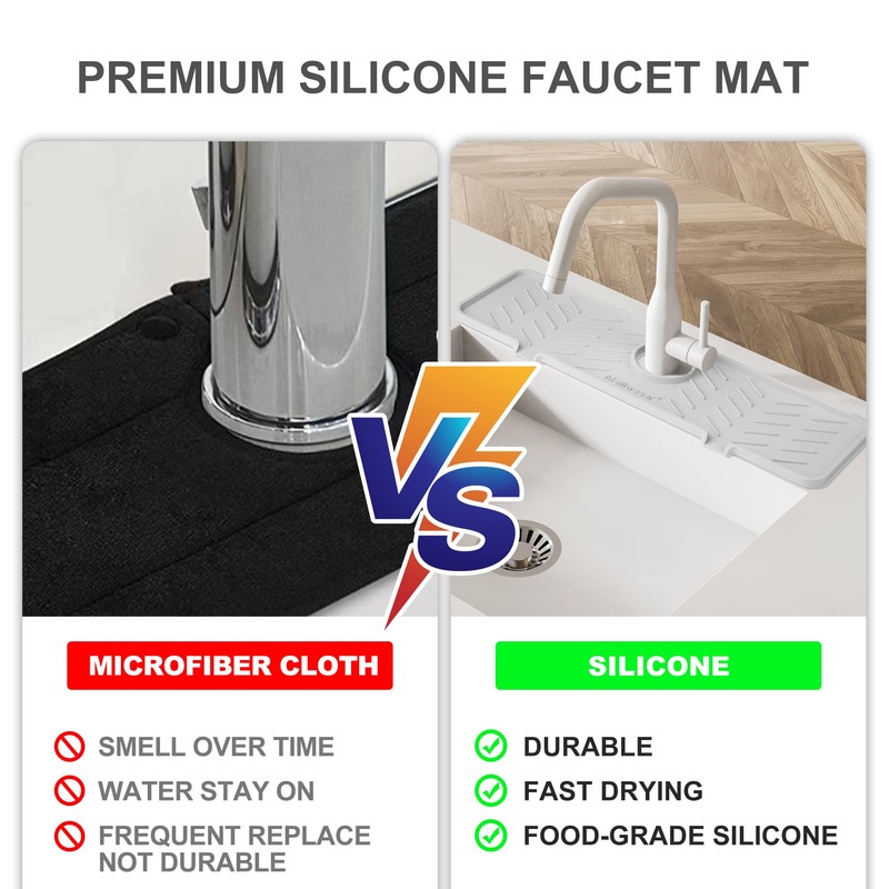 - 【Versatile Sink Organizer】 Not just a drying pad, our splash guard doubles as a sink organizer. You can store your cleaning tools such as brushes, sponges, and detergent on it, making your kitchen space organized and tidy.