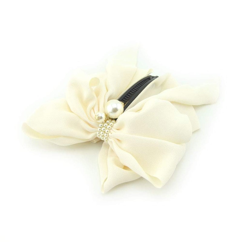 Meilliwish Cloth Pearl Beautiful Banana Hair Clip for Women Girls 1 PCS(H77)(White)