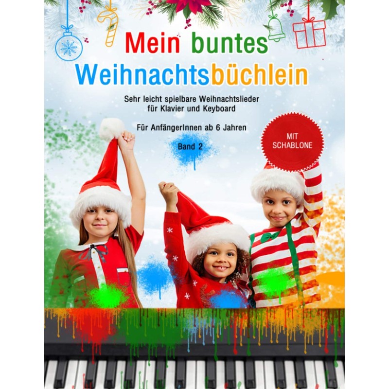 Mein buntes Weihnachtsbüchlein - Band 2: Sehr leicht spielbare Advents- und Weihnachtslieder für Klavier und Keyboard - Für AnfängerInnen (ab 6 ... Mit Audio und Lernhilfen - Mit Notenschablone