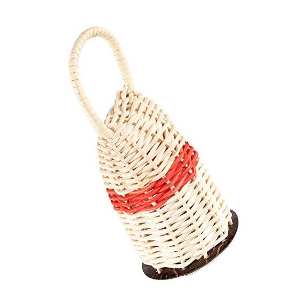 - Hand-woven rattan caxixi — the rattan body of this caxixi (also called a basket shaker) is hand-woven, and this material provides a soft sound texture with a mellow, earthy timbre and a high-pitched tone — the filling inside creates a primal shaker effect