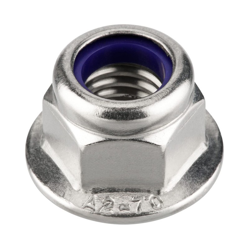 - Secure hold: flange nuts with an integrated plastic clamping part made of polyamide as a fuse and under-head teeth according to DIN 6926 / EN 1663. Securing the stainless steel nut is done by clamping the polyamide in the threads of the screw, when tightening.